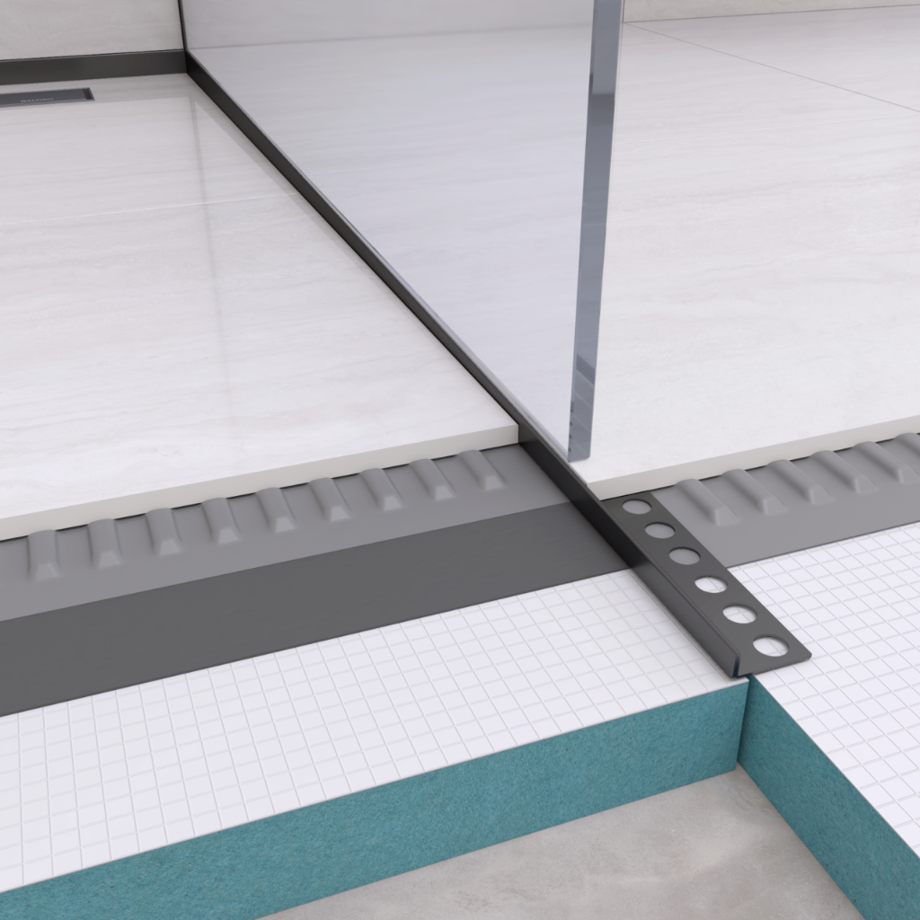 Listwa umożliwia równomierne wyprofilowanie podłogi w stronę odpływu liniowego, zwiększając efektywność odprowadzania wody i zabezpieczając płytki przed uszkodzeniem. Jej nowoczesne czarne wykończenie nadaje elegancji przestrzeni prysznicowej i ułatwia montaż bez konieczności docinania płytek w trójkąty.