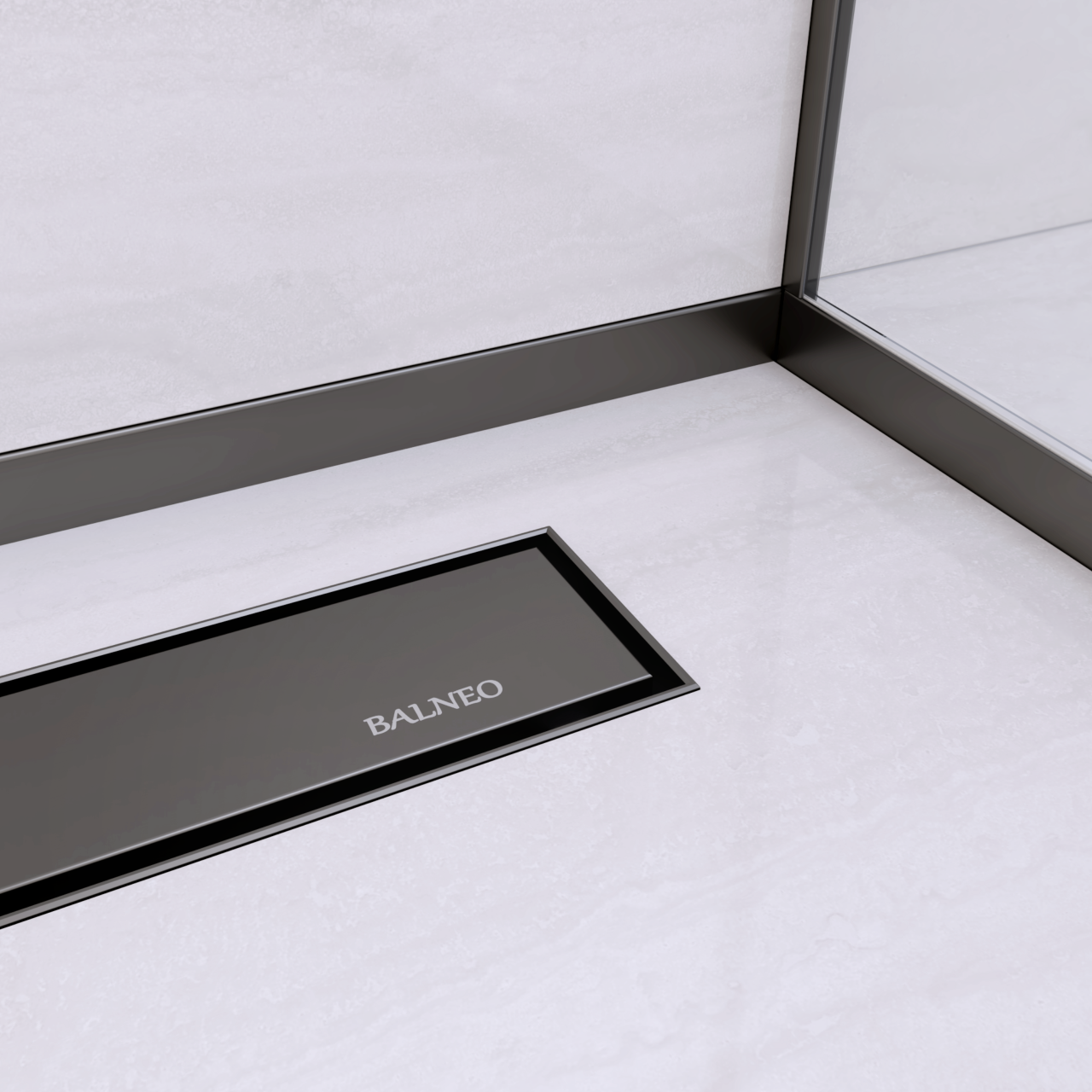Czarna listwa spadkowa Balneo o długości 170 cm przeznaczona jest do montażu po prawej stronie strefy natryskowej. Umożliwia wykonanie jednokierunkowego spadku do odpływu liniowego, poprawia estetykę wykończenia i ogranicza konieczność docinania płytek. Idealna do kabin walk-in w nowoczesnych aranżacjach.