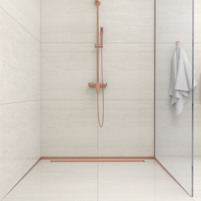 Listwa spadkowa przyścienna to innowacyjne rozwiązanie, które nie tylko podnosi estetykę Twojej kabiny prysznicowej, ale także znacznie ułatwia proces instalacji. Jej unikalny design obejmuje boczną krawędź, która precyzyjnie wymusza spadek jednostronny w kierunku odpływu, eliminując konieczność wykonywania tradycyjnej koperty czy wycinania płytek w nieestetyczne trójkąty. Dzięki naszej liście spadkowej montaż staje się prostszy i bardziej efektywny, pozwalając Ci cieszyć się zarówno doskonałym wyglądem, jak i funkcjonalnością swojej nowej kabiny prysznicowej.