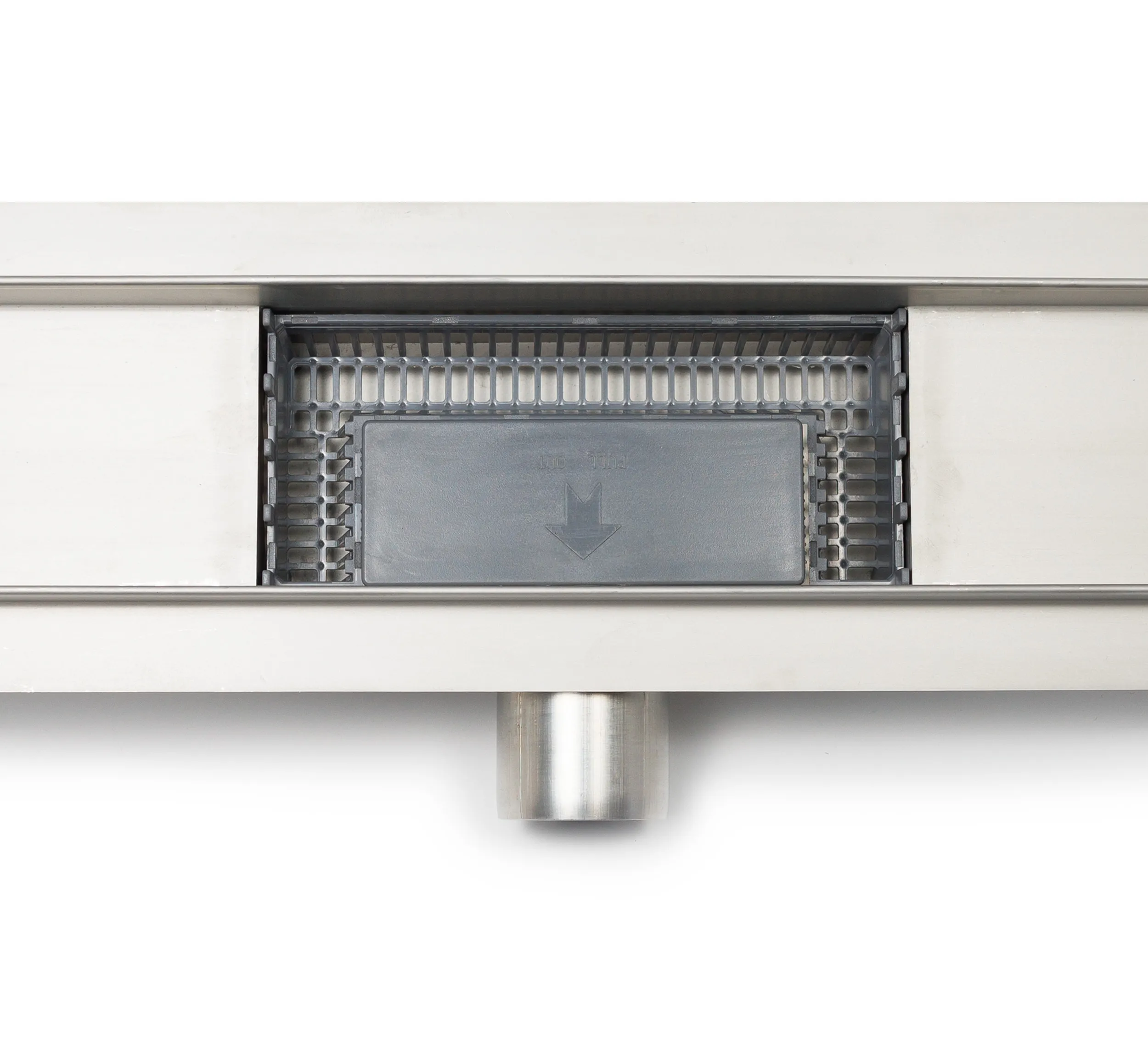 Dzięki powiększeniu stalowej komory w korpusie mieliśmy możliwość zastosowania również większego osadnika typu koszowego. Jego większa powierzchnia pozwala na zbieranie większej ilości zanieczyszczeń, a to z kolei prowadzi do 3-4 krotnie rzadszej konieczności czyszczenia odpływu.