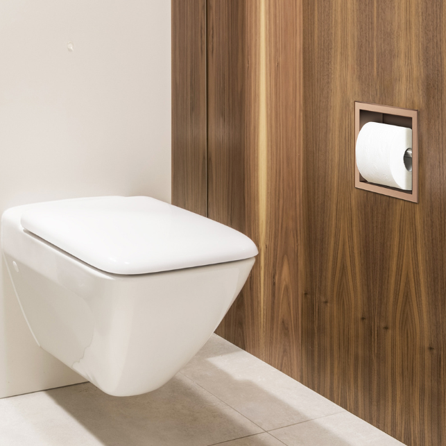 WALL-BOX PAPER 1 to wbudowywane w ścianę oraz łatwe i szybkie w montażu uchwyty na papier toaletowy.