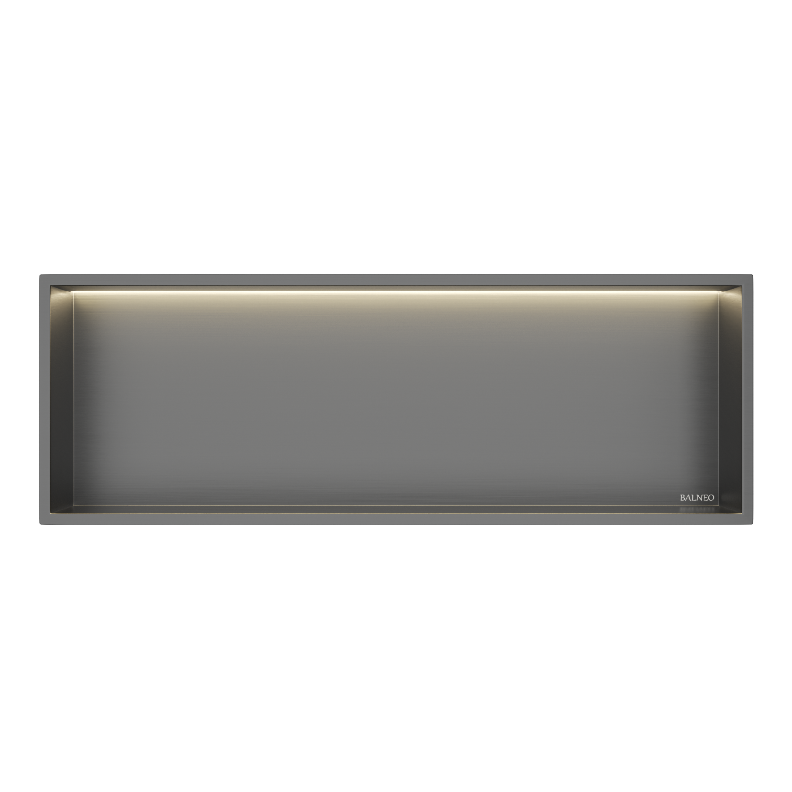 WALL-BOX ONE to podtynkowa półka prysznicowa wykonana ze stali nierdzewnej w wykończeniu Gun Metal. Konstrukcja jest odporna na działanie wilgoci i w pełni wodoszczelna, co pozwala na jej stosowanie w strefie prysznicowej. Montaż podtynkowy umożliwia utrzymanie estetycznej i uporządkowanej przestrzeni bez zajmowania miejsca w kabinie. Zintegrowane oświetlenie LED podkreśla wygląd wnętrza i zwiększa funkcjonalność półki. Seria zapewnia możliwość dopasowania kolorystycznego do odpływów liniowych, listew spadkowych oraz pozostałych elementów systemu.