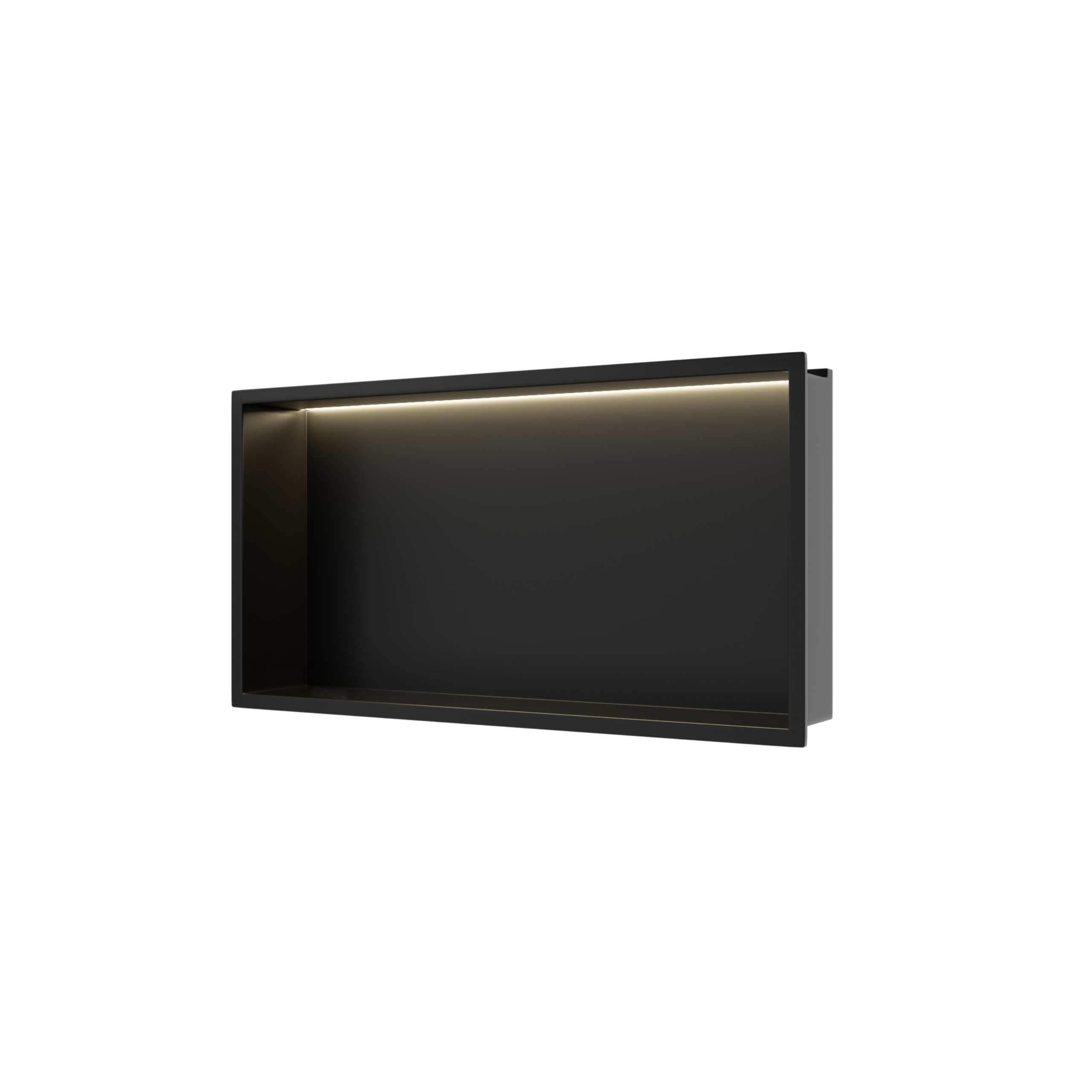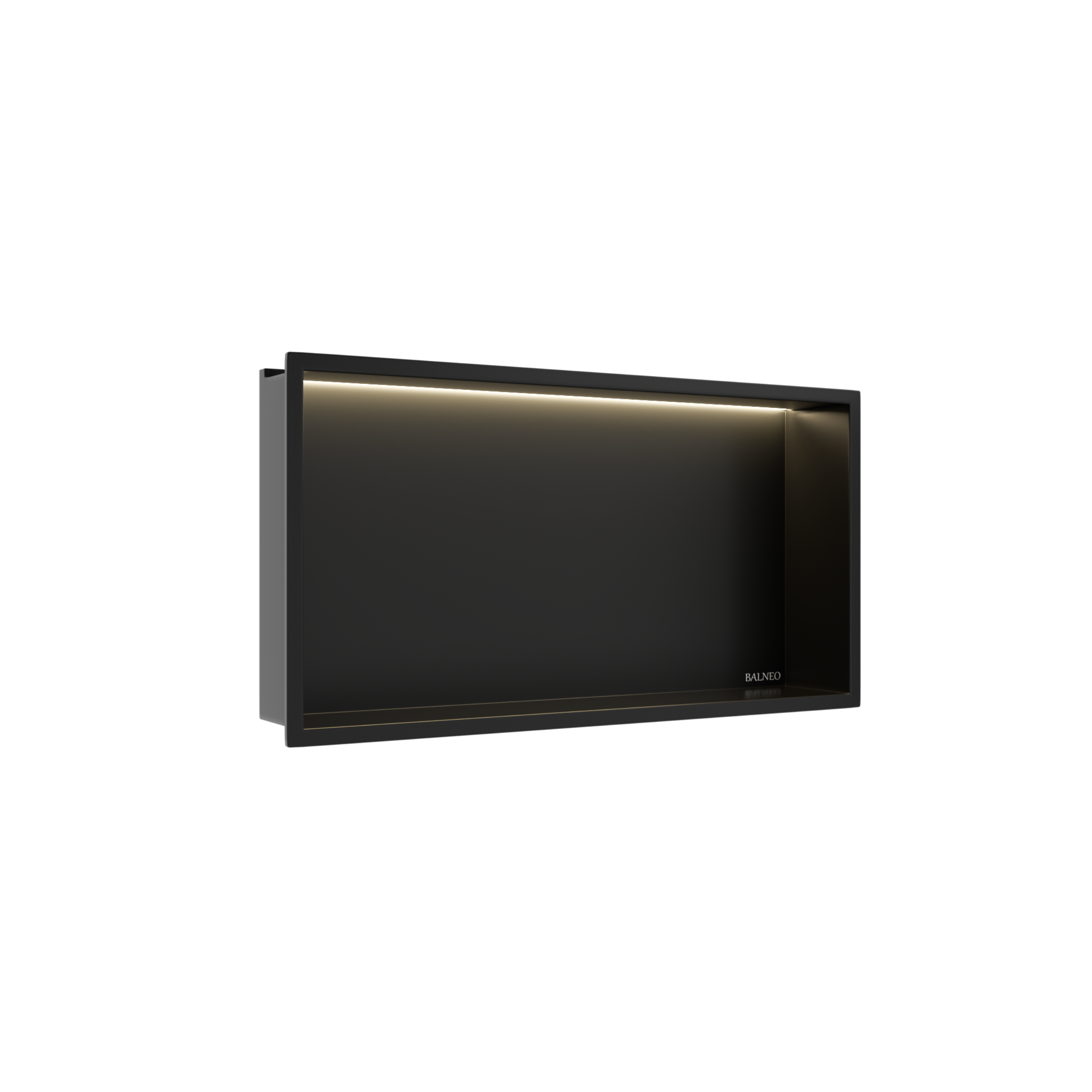 WALL-BOX ONE to podtynkowa półka prysznicowa wykonana ze stali nierdzewnej w kolorze Black. Konstrukcja jest odporna na wilgoć i w pełni wodoszczelna, co pozwala na jej bezpieczne stosowanie w strefie natryskowej. Montaż podtynkowy pozwala zachować uporządkowaną przestrzeń bez konieczności używania dodatkowych półek. Oświetlenie LED stanowi praktyczne i estetyczne uzupełnienie całości. Seria zapewnia możliwość dopasowania kolorystycznego do odpływów liniowych, listew spadkowych i pozostałych elementów systemu.
