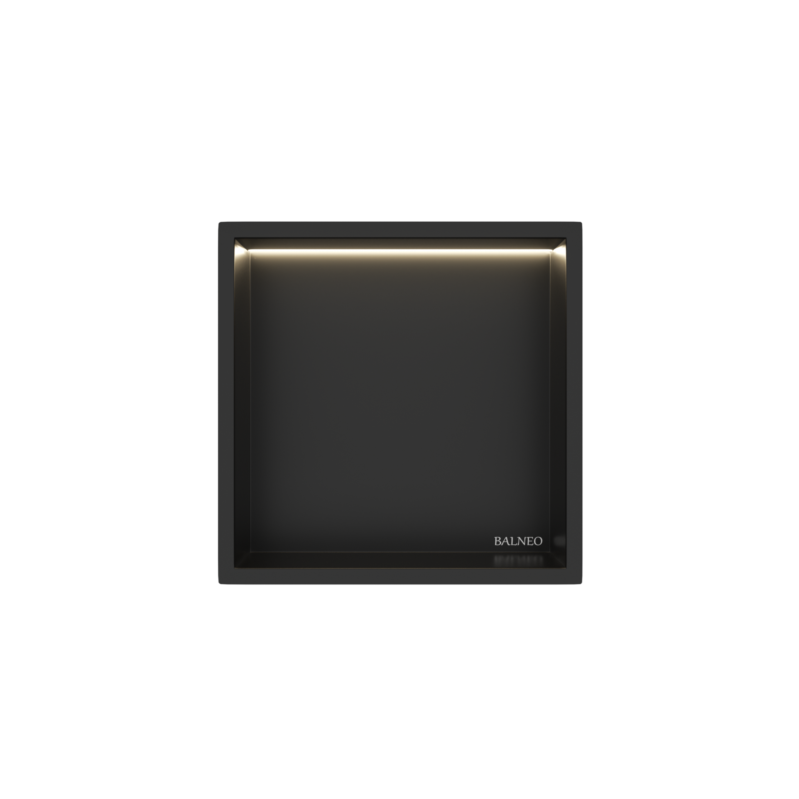 WALL-BOX ONE to podtynkowa półka prysznicowa wykonana ze stali nierdzewnej w kolorze Black. Konstrukcja jest wodoszczelna i odporna na działanie wilgoci, co pozwala na stosowanie jej w strefie natryskowej. Montaż podtynkowy umożliwia zachowanie estetycznej i uporządkowanej przestrzeni bez zajmowania miejsca wewnątrz kabiny. Zintegrowane oświetlenie LED stanowi funkcjonalne uzupełnienie i podkreśla wygląd wnętrza. Seria pozwala na spójne dopasowanie półki do odpływów liniowych, listew spadkowych oraz innych elementów systemu.