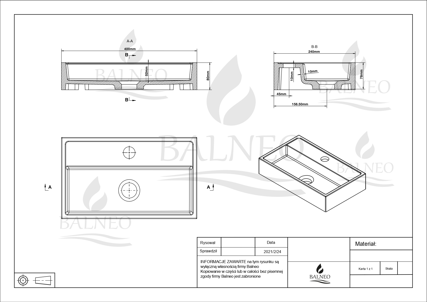 Umywalka została wykonana z wysokiej jakości konglomeratu, który zapewnia nie tylko wytrzymałość, ale także elegancki wygląd. Jej biały kolor oraz wykończenie w białym połysku nadają łazience świeży i nowoczesny wygląd.