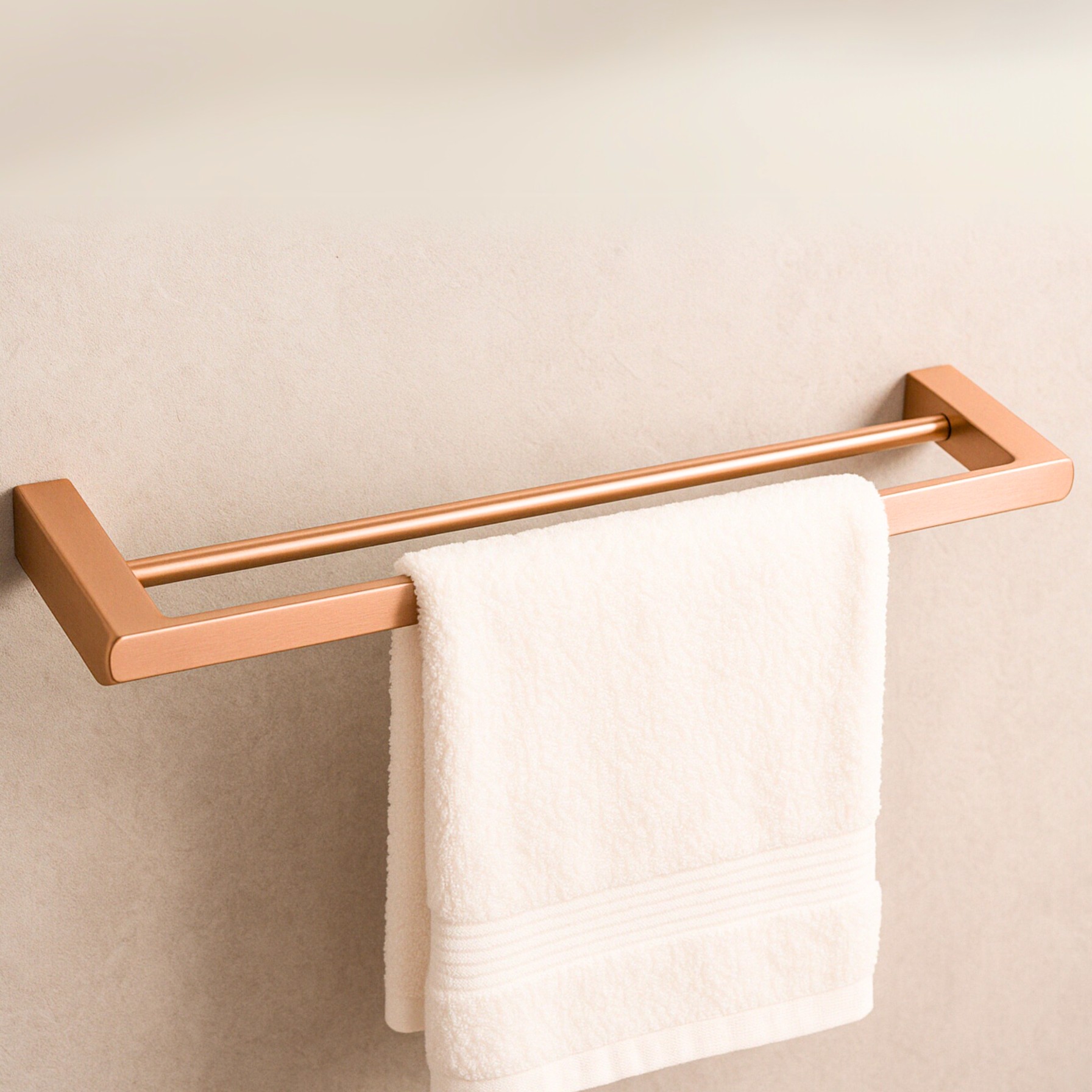 Wieszak łazienkowy Balneo QARX model 3 copper to efektowne i nowoczesne rozwiązanie dla przestrzeni kąpielowych. Dzięki podwójnej, płaskiej formie oferuje większą funkcjonalność w przechowywaniu ręczników. Ciepły odcień miedzi (copper) przyciąga wzrok i idealnie komponuje się z aranżacjami w stylu loftowym, industrialnym i glamour. Wykonany z odpornej na rdzę stali AISI 304.